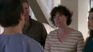 Der Chef stellt Alex ein paar Fragen und als Alex nicht antwortet, fragt er den Raum, ob jemand die häufigsten Ursachen für postoperatives Fieber kennt. Wenn niemand antwortet, tut es Meredith. The Chief fragt sie, was ihrer Meinung nach mit dem Patienten nicht in Ordnung sei und Meredith geht zu Recht davon aus, dass Patient 4B ein Hauptkandidat für eine Lungenembolie ist. Der Chef fragt sie, wie sie diagnostizieren würde, und sie macht es wieder richtig. Der Chief sagt Alex dann, er solle tun, was Meredith gesagt hat, und dann ist er aus dem Fall. Der Häuptling geht weg und sagt Meredith, dass er sie überall kennen würde und dass sie genau wie ihre Mutter aussieht.