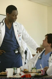 A group of interns are sitting in the canteen (after 7 hours of their first shift) when Izzie says that she is screwed because a resident already hates her but George sympathizes by saying he already has attendings hating him. Cristina then interrupts to ask if anyone else knew that Meredith's mother is the famous surgeon Ellis Grey, who performed wonderful surgeries, wrote books and even won the Harper Avery Award twice. The conversation is quickly cut short by Meredith who tells everyone that Katie is unbearable. Preston Burke then arrives at the table to say he gets to choose one intern to assist him in a surgery. He picks George to scrub in on an appendectomy and then walks away.