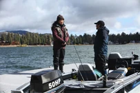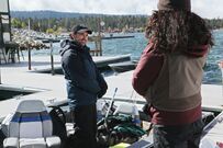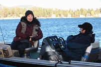 Out at the lake, Cristina suggests to mount the rod holders mid-ship, so they can reach the rods from either end of the boat. She did some research after he called her last night. He says it's a great idea. She can't help but making more suggestions.