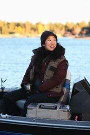 Out on the lake, Cristina wants Derek to quiz her on fishing gear names. Derek reminds her fishing is supposed to be quiet. He decides this is a good spot. She asks if it's typical to go for hours without a bite. Derek says fishing is unpredictable. Cristina still thinks they need to move the boat to actually catch a fish. Derek tells her to stop thinking and refuses to try it her way. She has trouble turning her mind off.