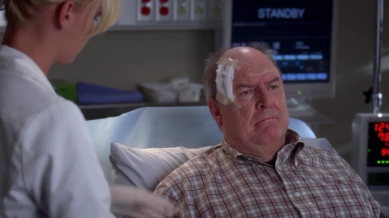 While stitching his face, Izzie noticed that one side of his face drooped, so she ordered a CT. The CT showed a brain tumor larger than a baseball, which was causing his lethargy. They planned surgery to remove it that involved pulling his face down and opening his skull.