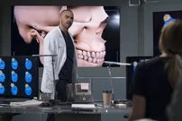 Jackson looks at the scan and wants to contour it down to his jawline, believing removing it completely was too risky. Meredith wants to do total resection anyway, because he lives in Venezuela and Jackson's way will require future surgeries. Jackson says they can't afford a bad outcome right now. Bob comes in and says there's a problem. They have to cancel the surgery.