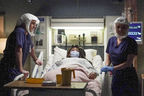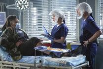 Owen and Richard are with Meredith. They think it's time for her to come off the vent now. Owen extubates her.