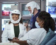Lexie asks Meredith her favorite thing about life. It feels shallow to talk about her favorite things in the middle of a pandemic. Lexie points out it makes no sense for her to think she is not allowed to enjoy her life because of a pandemic. If the having of a life and body isn't cause for celebration, there is no point in avoiding death and she may as well just join Derek. Meredith tells a story of Bailey faceplanting into his birthday cake to make everyone laugh because he had noticed how down everyone was because of the early pandemic. He saw the same sparkle in his eyes that she used to see in Derek's eyes.