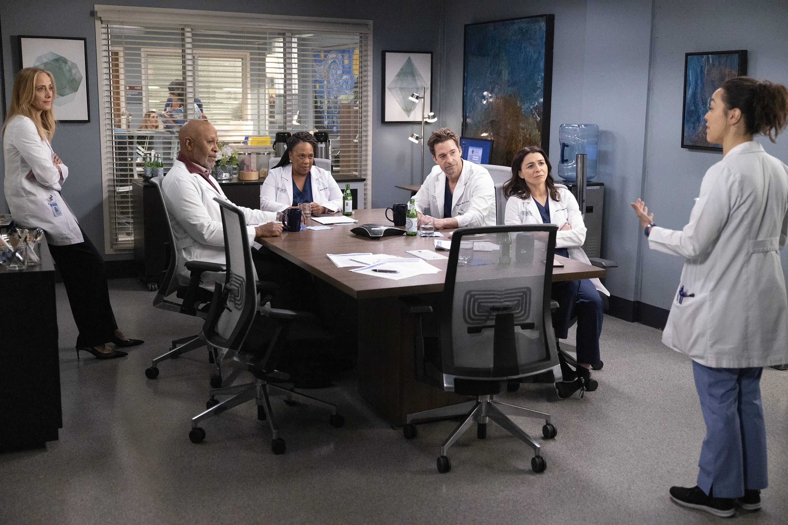 Teddy has called a meeting with Nick, Amelia, Richard, and Bailey. She hands out surveys that Levi distributed among the interns. Underneath some nonsensical requests are actually valuable responses, like the statement that the salary doesn't even cover the average annual living cost in Seattle.