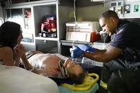 Ben finally gets an airway. Travis moves up to the front so drive and they leave.