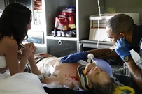 A call comes in and Maya offers to take it for Andy, saying Aid Car sucks and she could get peed on. Andy says she's had worse bodily fluids on her, even recently. She gets in the Aid Car with Rigo, who's happy to be riding with someone who will fight back.