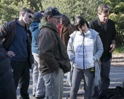 Ben, Dean, and Andy distance themselves from the bus. They need to lift it to free Carla, but it'll hurt Susan more if they don't free her first. Since the bus is compressing Carla's wounds, it buys them time to free Susan first. They'll re-assess in case Carla deteriorates.
