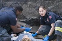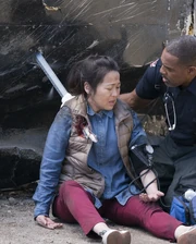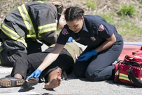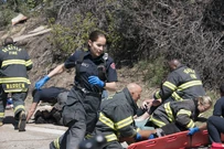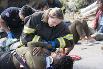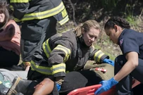 Andy checks on the other victims. Mary is losing quite a lot of blood. Andy takes over from Victoria so she can go help Travis with a red tag. Susan calls for Mary and asks her to drive Isabella to hockey in case she dies. Carla already said she'd do it, but Carla's always late. Mary wants to get up. She's the glue of the group. Andy understands. Her people need her to be the Captain now, so Mary needs to keep still so Andy can go do her job. Dean informs Andy that Carla's pulse is thready, meaning they need a new plan. Mary tells her to go save her friends. Victoria takes over. She tries to reach Station 23.