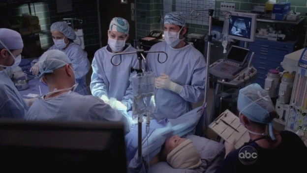 During surgery, Jen begins to crash, and Addison scolds Derek, just like the "Hot Dog Thanksgiving" where Carolyn breaks her wrist, Addison's never cooked a turkey in her life and Derek invites 34 people to their house for thanksgiving, giving her Nancy salmonella and Derek then cooks hot dogs and saves the day - same principle here, Derek gives false hope, Addison has to do the work and then Derek looks like the hero afterwards, until Addison successfully completes the procedure.