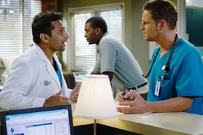 Alex is checking out an infected abscess. He wants to open it up, but Timir interferes. He has to page surgery. Alex is not surgery in here so he can't use a scalpel on anyone. Alex sighs as the patient says he thought Alex was a surgeon.