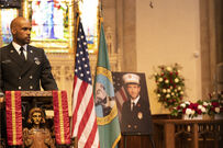 After the chaplain finishes her talk, it's time for Robert's eulogy. He says he's been thinking a lot about this. Ripley was a boss whom they looked up to. He gave everything to this department. As Lucas, he gave even more to those he loved outside it. To him, Lucas was a true friend. They understood each other, strengths and flaws. They fought and made up, thankfully not too late. Sometimes, you connect with a person and over time or distance or obstacles , you still find your way to each other. It's rare to meet someone who connects with you that way. Someone who makes you face your fears. It's so hard to say goodbye to them when they go. In their last conversation, Lucas told him not to say goodbye. Instead, Robert told him they were good. He wants to reiterate that now. They miss him and wish he hadn't left them so soon, but since he had to, it's all good. They're all good. He was so good.
