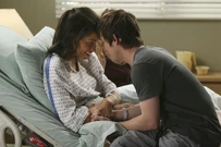 Derek is showing Rose his work, trying to explain what the trials are doing. She tells him that when she said they should spend more time together, she meant the movies. Meredith comes in with the charts for patients 12 and 13, Jeremy and Beth. Derek looks them over, commenting that they're young. Telling Rose goodbye, Derek and Meredith go to meet their patients.