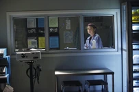 Bailey takes a tray full of vials and puts it into a deep freeze to incubate overnight. Ben comes in to tell her he can't go home. She wants to stay all night to watch the virus, but he tells her to go home and sleep because he can't.