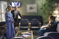In the waiting area, Cooper asks Sheldon to switch seats, as Sheldon is sitting where he sat when the Violet/Katie thing happened. That turned out okay, so he wants to sit there again. Sheldon says he was sitting in this seat when Dell died, so all the more reason to switch. While the guys switch, Addison stays in her seat, as she was operating both times. They all think Sam and Amelia are the best to deal with the situation, but Addison knows it must be hard for them to set their feelings aside. Lucas is hungry, so Addison takes him to go find something to eat. She asks the guys to call her if something happens. Cooper is checking his phone, finding out that Violet's plane hasn't left yet. This means she's still at the airport. He walks off, leaving Sheldon all alone.