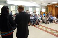 Derek comes up and tells Jackson that he has a backlog of cases. He asks Jackson to reschedule that night's board meeting. Jackson says no, but Arizona asks if they're re-scheduling, because she and Callie have a meeting and she's apparently already started her fellowship. Jackson repeats that they're not re-scheduling, but Derek just asks Arizona if tomorrow works for her. She says tomorrow's bad, too. Jackson demands their attention and says they're voting on a new board member, so the meeting has to happen.