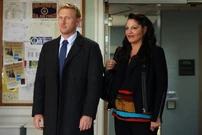 Amelia comes up and asks Derek why he changed the order for one of her patients to a different anti-convulsant. She says he can't go around changing the orders for her patients. He says he's doing his job, but Amelia corrects that he's doing HER job. She's the head of neurosurgery and if he has a problem with that, he should take it up with the board. Until then, she'll call him when she needs him.