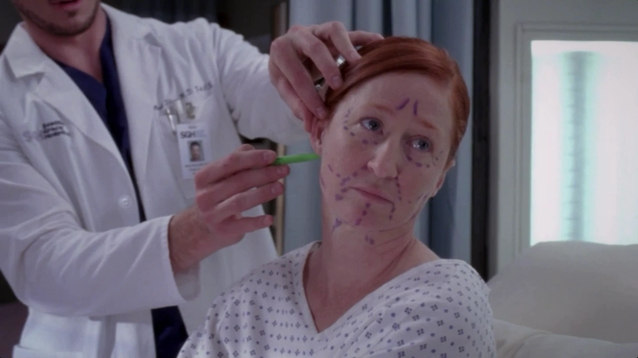 Harriet was dissatisfied with her appearance and so went to Mark Sloan to get a face lift.