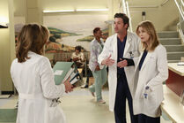 Derek figured out that Heather chattered throughout their surgeries to coverup the fact that she lacked confidence in her natural talent and he took it upon himself to build up her confidence. Later, while they were placing a stent in Paul Dawson, Derek was informed that Meredith had fallen down the stairs and was going to OB to get checked out. Heather assured him that the hard part was over and she could finish without him. ("Readiness is All")