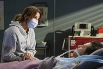 Teddy enters Tom's room. He asks for details from her surgery. She just tells him it went well. His oxygen saturation has gone up, which is encouraging. She tells him she did love him. She tried not to because she also loves Owen. She thought she could love them both, but instead she tore it to the ground and took them both with her. Tom says he asked her for one thing. She's convinced herself she loved them both, but empirical evidence suggests otherwise. Owen doesn't want her. But Tom is still there. If she loved him, they'd be together instead of miserable. He asked her to admit it because he needs it. If he survives COVID, he wants to get up off the ground where she dropped him, so he needs her to say she never loved him. Teddy tells Tom she never loved him and he thanks her.