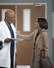Richard greets Maggie Pierce as she gets off the elevator. She came by to deliver bad news to a patient she has been treating for a long time. They run into Winston. After some awkward small talk, Winston leaves to prep for a surgery.