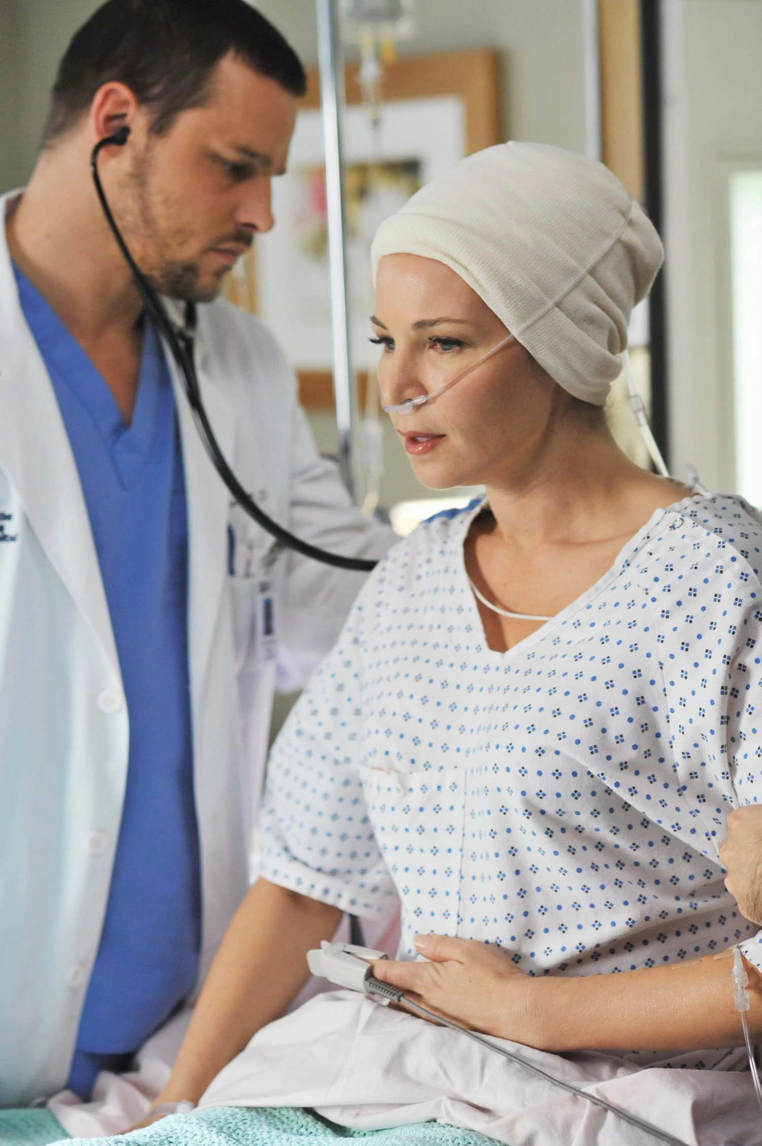 When he arrived back at the hospital, he found Jen with difficulty breathing. He then consulted with Addison on the case. Addison suggested that the baby could be the problem. They did a doppler and found that the baby was anemic and Jen was mirroring. After running more tests, which showed that the baby was in heart failure, Addison said it was likely due to the blood Jen had gotten during her first surgery being incompatible with the baby. Addison said ideally, she'd do an in utero blood transfusion, but this wasn't ideal. She instead suggested delivering the baby to save Jen's life. Jen declined and said she wanted to wait two weeks to give him a better chance. They asked for another option, so Derek mentioned the transfusion, despite Addison saying it was too risky. Jen insisted that she wanted it. Addison did the transfusion successfully. ("Ex-Life")