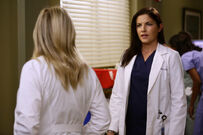 Arizona and Leah are on their way to the OR to deliver the baby. Eliza appears behind them and since Leah's done that before, Eliza suggests this is the perfect opportunity to let Leah take the lead. She's heard they need to hire a new Chief of Pediatric Surgery since apparently, theirs went up the river. Arizona tells Leah to go make sure that Mindy's set up. As soon as Leah's gone, Arizona tells Eliza that she's not welcome on her case. Eliza says she's not asking. The patient is her student's classroom. Arizona finds that distasteful and since Richard is a friend of hers, Eliza has to stay the hell away from her OR. Richard's overheard the conversation from a distance and he seems pleased.