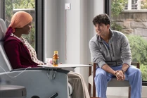 Katie walked around looking for Bailey to ask her some questions. Instead, she found and asked Lucas the questions she had about trials she was looking into. When she complained of leg pain, Lucas examined her and found evidence of a blood clot. An ultrasound confirmed it and he put her on heparin to break up the clot. ("Goodbye Horses")