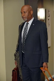 Alex is putting on a tie in cab that's stuck in traffic. He suggests the driver take the bus lane, but the driver refuses. They're about 20 blocks away from his destination. Alex throws money and then gets out of the car. While he runs towards the hotel, his examiners talk about the game last night.