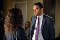 April is drying her shirt in the men's restroom. The men remind her it's a men's restroom, but she yells they're all doctors. Jackson comes in. They're both failing and start panicking. April says Jesus in the only one who can calm her down, but she broke her promise and he won't talk to her now. Jackson asks her why she let him do it then, but she doesn't know. As they're yelling about it, he says that being the guy who made her break her promise is very unbecoming, especially for an Avery. April can't believe he's comparing breaking her promise to Jesus to putting a tiny dent in his family's crest. They calm down and he apologizes. He's worrying about his mother and what she'll say when he fails. She says that's not pathetic, as it's the most important relationship of one's life. April says it's not the problem that she broke her promise, the problem is that it felt good. They talk about how it happened. He locks the door while they keep on recapitulating the previous night, soon ending up kissing again. He picks her up and takes her into a stall.