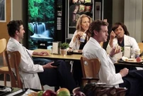 In the cafeteria, one of the candidates sniffs a roll, disgusting the attendings. Bailey says they need to keep their people and everyone agrees. They talk about their resident's options and Bailey says her contact in Boston said that Meredith said that their program is her top choice. Mark looks at Derek and says he's building a house. Derek says Harvard has a really good neuro department and there are really nice houses there too. He walks out of the cafeteria, frustrating Mark.