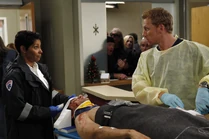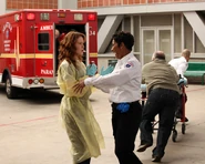 After a tunnel collapsed, Nicole brought in Joan Paulson, who was 40 weeks pregnant and in labor, along with Andrew DeLuca, who had treated Joan in the field and the ambulance. ("Time Stops")