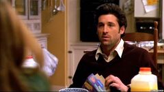 Meredith watches Derek brush his teeth in the bathroom and suggests they sleep at his place tonight. She doesn't understand why they always sleep at her place and wonders if he even has one. Derek doesn't answer and heads downstairs to the kitchen. He greets George who offers one of Izzie's cupcakes for breakfast. Derek says he likes it here, that Meredith prefers having her things here, sleeping in her own bed as he gathers a bowl and cereal. George asks if he's a health nut as he easts muesli every morning, which Derek denies. Izzie says he definitely does, the last 7 days at least. Derek then realizes he's been there all week.