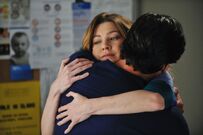 Teddy meets with Andrew in a conference room. She's enjoying this, but she thinks she talks too much. She wants to be sure she's not using him as a shrink. He says listening to her is not work. He's listened and talked a lot today, so for now, he'd like to say he's enjoying this too. They kiss and he suggests they both not talk for a while. He brings up that Richard went over his head to clear Yang, but Teddy repeats they don't have to talk and kisses him.