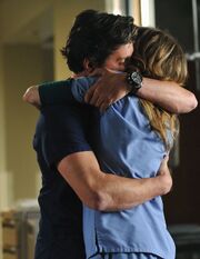 Derek asks Meredith if Cristina is all right. She says she's not. No one's all right and Andrew just keeps clearing everyone. She then tells Derek to stop talking about the prison thing as it was just one night. Derek doesn't want her to worry about it anymore. Meredith says all she does is worry, all the time, that she's gonna get a phone call that he's wrapped his car around a pole. She left him in jail so for a little while, she wouldn't have to be worried about him dying. Derek says he's right here, and they're okay. She then confesses she was pregnant, and that she lost it. He wonders why she didn't say anything as he could have helped her. She says he can help by keeping his driving under control. They kiss and hug.