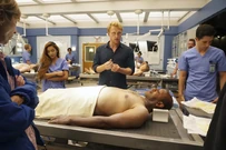 Richard shows Tracy and Bailey into a radiology suite, where she's familiar with the new technology. He projects a brain and asks asks to look around. Bailey goes with her. While they do that, Catherine comes up and asks Richard to admit that he likes Tracy. He does, but he likes Bailey better. Catherine says he and Bailey have been together too long. She doesn't challenge him. He says Bailey's not soft and Catherine says she's too comfortable. They need someone who will make them uncomfortable.