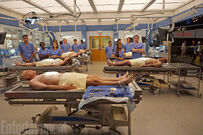 Aliyah was injured by a train in an attempted suicide. One of her feet was completely turned around by the impact. She had internal bleeding, which required an exploratory laparotomy. Her legs had been pulled apart by the impact, causing a wishbone tear. Her pupils were sluggish, so Amelia ordered a CT. They took her into surgery and Amelia monitored her neuro status as they worked on her other injuries. While they were working, they uncovered a pulmonary artery bleed. They paged cardio, but no one was available to respond, so Tracy McConnell helped from the gallery, telling them to open a sternotomy. They were reluctant, but eventually agreed and opened her chest in a second place to clamp the bleed. They finished the surgery, but they informed her father that it was complicated and she lost a lot of blood. Despite this, she woke up after her surgery.