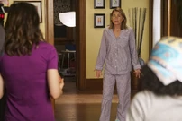 As Meredith's voiceover talks about thinking you've done this before, Meredith awakes to a banging sound. She races down the stairs to find Amelia putting a hole in the wall with a sledgehammer while Maggie watches. Meredith asks what she's doing and Amelia says they talked about it. Meredith defends that they considered it and then they went to bed. Maggie straddles the line between supporting Amelia and supporting Meredith. She talks to both of them and listens as Meredith says she's used to living with people who know her and know not to do things like change the channel during the commercial. Amelia says that she thinks Meredith will just patch it up rather than considering making the change. Meredith says she should stop taking in strays because they have fleas. Amelia says she does the dishes and the laundry. Meredith says she can't find her own laundry because Amelia puts them away. Each says the other is impossible.