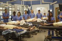 Meredith walks into the anatomy lab and tells them to forget everything they know about anatomy and start new with her. They all make the first incisions on their cadavers.