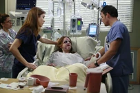 In the trauma room, Meredith's temperature has risen to 96 degrees. They only have to get her heart beating. Burke orders meds.