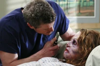 Meredith finds the deceased in the ER. She wants to go back. Bonnie says there wasn't a lot of time. Meredith asks if she's out of time. Elizabeth says they don't know. Meredith panics. She had intimacy issues. That seems so stupid now. Just a whiff of Derek or Cristina isn't enough. She needs to go back now. She begs.