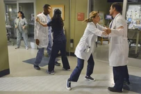 A paramedic wheels in a patient, saying there was a MVC pileup by the waterfront. Owen warns they have multiple incoming. Nicole tells Arizona that the cars took out pedestrians, too. Arizona is examining a little girl, whom Nicole informs her wasn't conscious in the field. Arizona wheels her toward a trauma room. Shane stands in the entrance of the ER, watching. Jackson comes in and calls for Shane, saying he needs help, but as Shane walks toward him, Owen says Shane's with him for the day. He tries to send Stephanie with Jackson, but quickly realizes his mistake. He wants to send Ben instead, but Richard objects, saying Owen can't break up the "Big Dogs." Leah says she'll go because she wouldn't want to break up the "old dogs." Ben corrects her, but she's gone. Ben goes back to his patient, who has heard his remark and says it wasn't a dog; it was a cat, a really big cat.