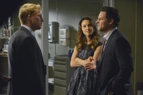 Alex sits with Jimmy's body while Jo watches from the doorway. Alex turns around to look at her and she comes up behind him and puts a hand on his shoulder in support.