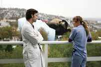 At Joe's, a man asks Meredith if the seat next to hers is taken. After verifying that he doesn't work at the hospital or is a doctor of any kind, she tells him the seat isn't taken. She's open to letting him buy her a drink.