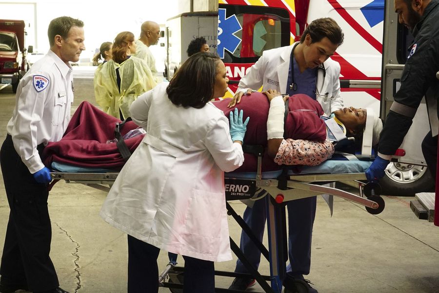 Flashbacks to earlier that day. In the ambulance bay, Bailey talks to Gretchen as the paramedic unload her from the rig. Gretchen is worried about her three other kids and Omar, her husband. The paramedic informs Bailey Gretchen was in a car pile-up.