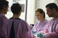 Arizona is scrubbing in for Gretchen's crash C-section. April joins her and tells her the crash C-section already happened.