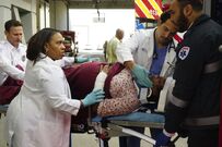 Omar, 36, came into the hospital after a car accident. He had abdominal bleeding. Because of the code pink lockdown, they prepared to do a thoracotomy in the trauma room, but when the lockdown was lifted, they were able to move him to the OR before operating.