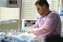 Alex checks on the baby in the NICU. He's not oxygenating and he asks to have neuro and cardio paged. Alex asks how far along the mother was. Ben thinks 34 weeks. He says it was a delayed placental abruption. Alex needs to know more.
