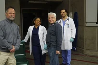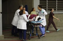 Richard, Meredith, Stephanie, and Maggie are moving their patient as the alarm begins. They rush to reach an OR in time before they're stuck somewhere.