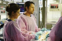 Ben has to go now as the baby's lost almost his entire blood volume. Andrew can't get a pulse. April arrives to answer her page. Andrew keeps going as nurses arrive. They help out as Bailey says they need Robbins and a clear OR now. She switches with Andrew and wonders who butchered this patient, and then recognizes her as Gretchen McKay.